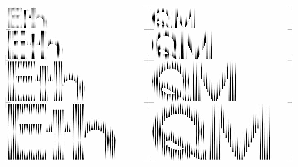 RIMS ist eine variable Display-Schrift. Die Dicke und Ausrichtung der einzelnen Komponenten ist frei Verstell- und Animierbar. RIMS ist noch Work in Progress. Stand jetzt sind das lateinische Alphabet in Versalien und Minuskeln, Zahlen und Punktionen verfügbar.